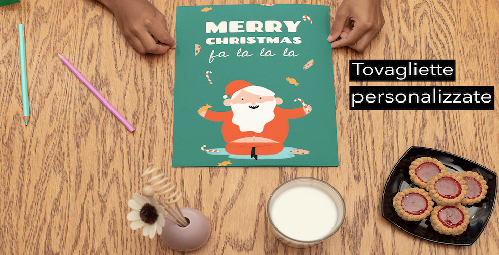 Cosa ne pensi dei complementi d'arredo in cucina? Sotto l'albero metti le tovagliette e i sottobicchieri personalizzati per te e i tuoi cari, stampati a 4 colori da un solo lato su un particolare materiale plastico.